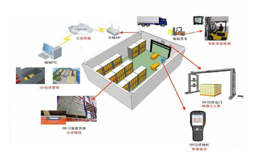 基于RFID技術的叉車智能倉儲已經成功應用于多個第三方物流倉、汽車零部件制造工廠、知名酒廠、輪胎密煉車間等多個行業多種領域。在整個供應鏈物流中,叉車正從物料搬運車輛轉變為配有計算機、RFID、傳感器等信息技術的智能工具。使得叉車在裝卸、運輸、調配貨物時縮短查找時間,對貨物進行合理分類控制,達到提高效率、降低成本、有效控制的目的。